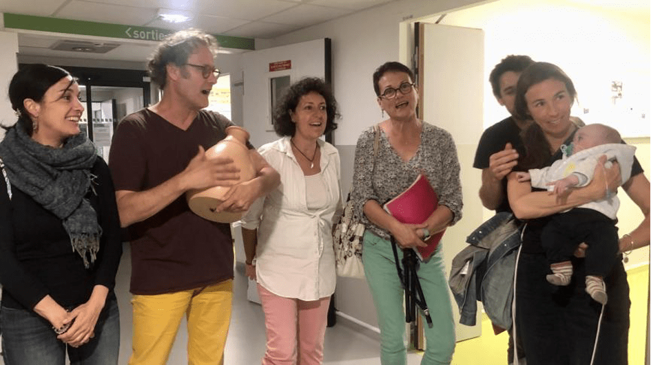 Depuis 2019, l’association Kalimba intervient régulièrement au service de néonatologie del’hôpital de Chambéry pour chanter auprès des familles.